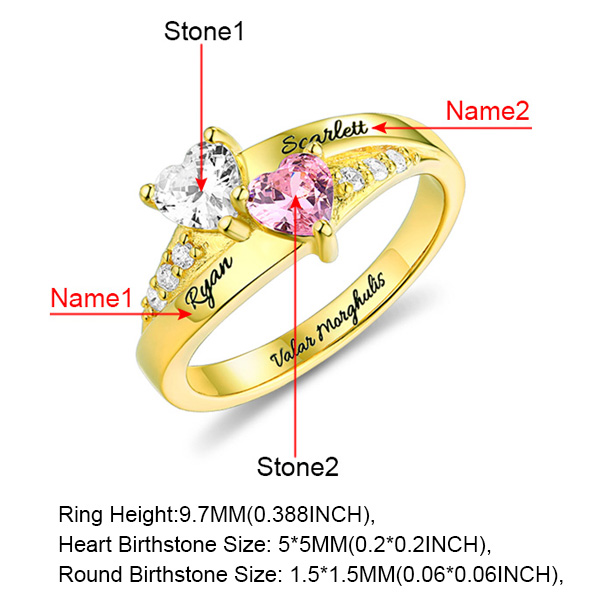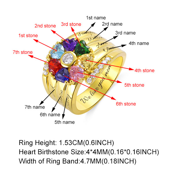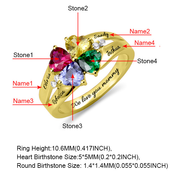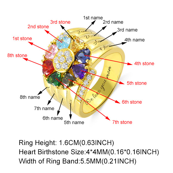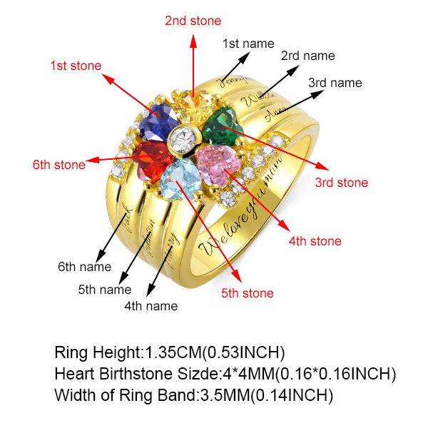 Ob Familie, Freunde oder Liebhaber, haben wir alle Arten von Versprechen und Romantik. Dieser hochwertige Ring kann Ihre Liebe und Ihr Versprechen symbolisieren. Die Oberfläche des Rings ist fein poliert, um einen Hochglanz zu zeigen. Sie können die Anzahl und Farbe der Steine auswählen und Namen oder einige bedeutungsvolle Wörter in Ring gravieren. Dieser Ring ist eine Geschenkbox mitgeliefert, die ideal als Geschenk ist oder den Ring aufbewahren kann.
